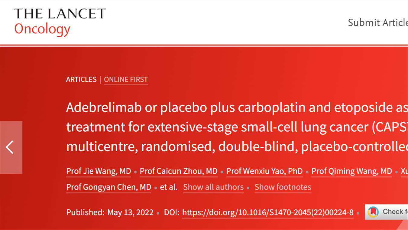AG真人卡瑞利珠单抗联合阿帕替尼最新研究成果荣登《柳叶刀·肿瘤》