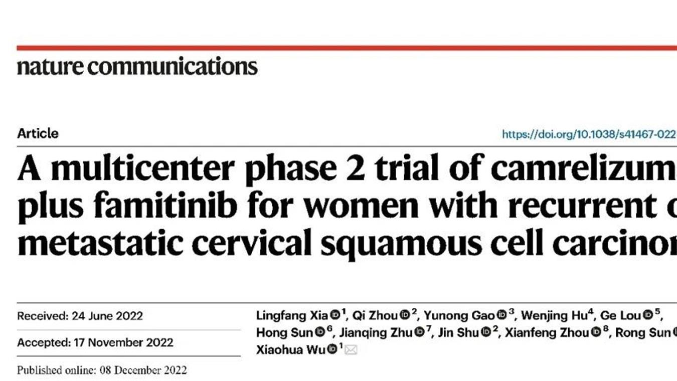 AG真人创新药卡瑞利珠单抗联合法米替尼用于复发或转移性宫颈癌研究结果荣登JCO